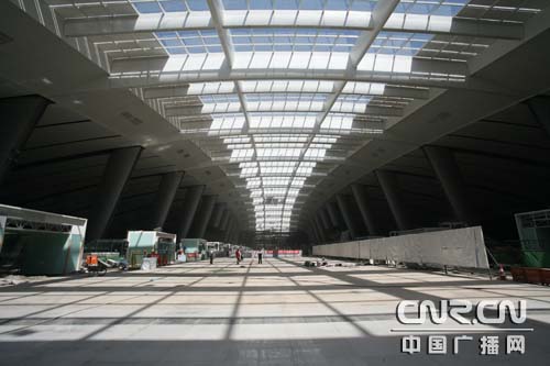自2005年12月25日開(kāi)工至今,歷時(shí)2年多,北京南站這一設(shè)計(jì)使用年限100年、總建筑面積42萬(wàn)平方米的大型綜合交通樞紐,日前進(jìn)入工程收尾階段,預(yù)計(jì)于6月30日竣工,7月中旬完成系統(tǒng)調(diào)試,8月1日正式開(kāi)通運(yùn)營(yíng)。
