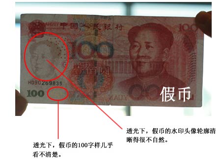 一看。即看鈔票上的固定人像水印、白水印、光變油墨面額數(shù)字、交印對(duì)應(yīng)圖案、隱形面額數(shù)字等特征。據(jù)介紹,真鈔票的“固定人像水印”有立體感,清晰度高,“白水印”的高透光反光性強(qiáng),“交印對(duì)應(yīng)圖案”是一個(gè)圓形方孔錢。這三處在迎光透視時(shí)都可以清楚看見;光源角度發(fā)生改變時(shí),真幣的“光變油墨面額數(shù)字”會(huì)有綠色和藍(lán)色顏色的漸變;此外,在與眼睛平行上下抖動(dòng)時(shí),可以看到“100”的隱形面額數(shù)字。