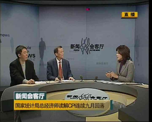 李小萌:你好觀眾朋友,歡迎來到正在直播的《新聞會客廳》。今天上午十點,國家統(tǒng)計局公布了2009年1月居民消費價格指數(shù),也就是CPI指數(shù)是1.0%,這也創(chuàng)下了2006年8月至今最新的一個低點。今天我們就請到國家統(tǒng)計局總經(jīng)濟(jì)師姚景源先生來和我們共同通過理解CPI,來理解我們當(dāng)下的生活,以及未來的生活會發(fā)生什么樣的變化,歡迎您姚總,同時在場外我們也請到兩位經(jīng)濟(jì)領(lǐng)域的專業(yè)人士會提出他們的觀點,帶出他們的聲音。 而坐在姚總旁邊的是三聯(lián)生活周刊的副總編輯李鴻谷先生,今天請您來,我知道您對經(jīng)濟(jì)其實涉獵也很多,但是你今天的任務(wù)是最普通人的角度,最普通人的觀點來觀察和提問好嗎?