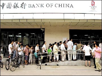 昨天凌晨3點左右,中國銀行北京知春路支行門外,上百名市民已在門口排隊,等待購買奧運紀念鈔。同樣的情況出現(xiàn)在市內(nèi)其他多處中國銀行網(wǎng)點。