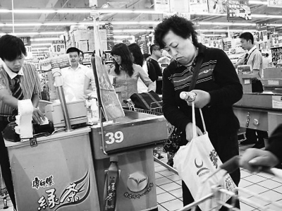 在超市我們發(fā)現(xiàn),和趙大媽一樣,“限塑令”正悄然改變一些市民的購(gòu)物習(xí)慣,拎著環(huán)保袋上超市購(gòu)物漸漸成為一種時(shí)尚。
