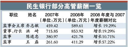 不過,董事、副行長洪崎在眾高管降薪中獨(dú)樹一幟,升職加薪。去年薪酬達(dá)853.92萬元,比上年增長138.07萬元,“因工作原因職級調(diào)整,2008年薪酬比照行長執(zhí)行!泵裆y行在年報(bào)中解釋。