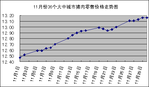中新網(wǎng)12月3日電 國家發(fā)改委網(wǎng)站消息稱,據(jù)國家發(fā)展改革委價格監(jiān)測中心監(jiān)測,上周(11.26-11.30,下同)全國36個大中城市豬肉(精瘦肉)集市平均零售價格每500克為13.13元,比上期(11.19-11.23,下同)上漲1.23%。