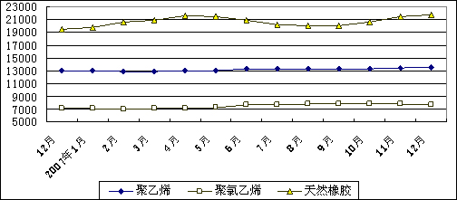 主要化工產(chǎn)品價(jià)格有所上漲。12月份,36個(gè)大中城市聚乙烯、天然橡膠平均價(jià)格分別為13613元/噸、21716元/噸,比上月分別上漲1.53%、1.36%。聚氯乙烯平均價(jià)格為7777元/噸,比上月下降0.45%。