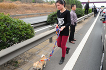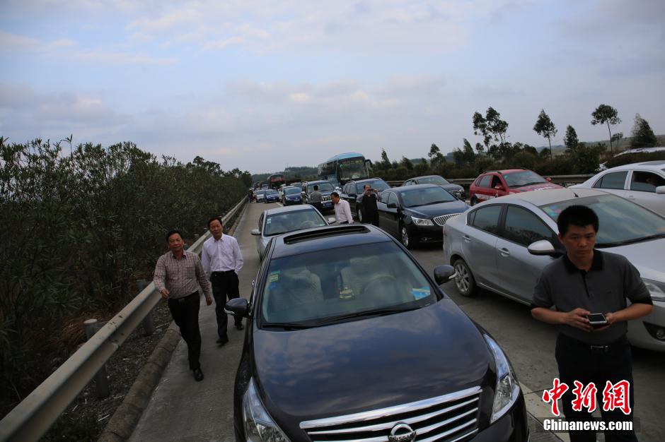 春運(yùn)返程粵贛高速南下公路擁堵 車主下車遛狗