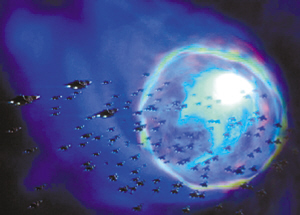 生活著游牧民族 除了在各個星球上土生土長的生物外,霍金還相信宇宙間存在著漂浮的生命體,成群結(jié)隊(duì)地游離在星球與星球之間,屬于外星生物中的“游牧民族”。它們會以人類難以想象的技術(shù)飄進(jìn)“蟲洞”,霍金認(rèn)為,這些生物可能用猶如行星般大的“收集器”吸收各個星球的輻射能,進(jìn)而獲得能撕破“蟲洞”穿越時空的巨大能量。