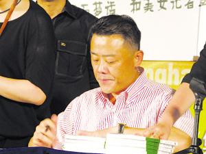 看著如此瘋狂的人群,周立波脫下身上的黑西服問(wèn)大家熱不熱,臺(tái)下齊聲喊:熱,他說(shuō)那就證明大家都很正常。周立波話題一轉(zhuǎn)說(shuō),他每年都會(huì)出一本“詼系列”的書(shū),這本《詼新聞》是要告訴大家看新聞也可以很快樂(lè)!澳銈兛催^(guò)這本書(shū)后,再看新聞聯(lián)播就會(huì)感覺(jué)不一樣。大家活著都不容易,快樂(lè)最重要。現(xiàn)在生活節(jié)奏如此之快,信息之浩瀚,我們必須要用輕松的方式去面對(duì)。”說(shuō)完快速坐下,在一本本剛剛出版的新書(shū)《詼新聞》上飛速地簽上大名。兩名高大的黑衣保鏢始終站立在他的兩側(cè),耳朵上安插著耳麥,嘴里不停地說(shuō)著什么,眼睛則不停地搜索著每一位手捧圖書(shū)的讀者。