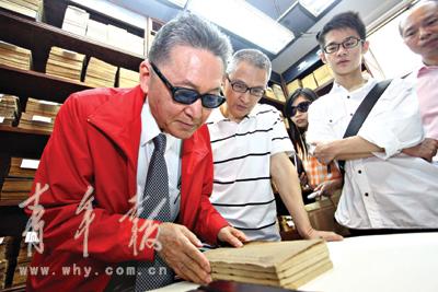 昨天一天可以概括為李敖在滬的“懷舊之旅”,因為這天李敖對于上海的拜訪,幾乎是從整個中國的古籍中穿梭而來,從上海博古齋到中共一大會議舊址,再到上海圖書館;尤其是在上海圖書館的簽名題字“頹乎其間,人書俱老”。他說:“站在這里,書有很久遠的歲月,它老了,而我也老了!