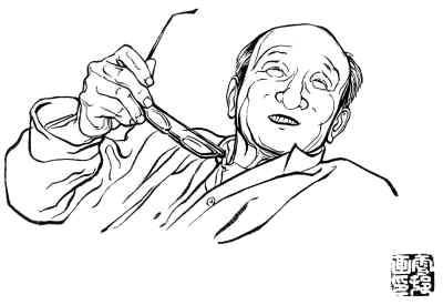 黃老確實(shí)非常喜歡表演藝術(shù),就是在交談中也常夾雜四川話、天津話、江蘇話等方言,前些年還常常“戲癮”纏身,不能自拔。一次,德國(guó)朋友領(lǐng)著攝制組來(lái)給黃老拍電影,是記錄黃老和英若誠(chéng)用英語(yǔ)合演《訪鼠測(cè)字》的片子。演著,演著,黃老忽然從凳子上翻了個(gè)倒“吊毛”,接著一轉(zhuǎn)身,又從凳子下面鉆了出來(lái)。嚇得全家人目瞪口呆,生怕給老爺子摔出個(gè)好歹來(lái),可他卻一本正經(jīng)地說(shuō):“我?guī)熜滞鮽髭【褪沁@么演的,我不能少了……”