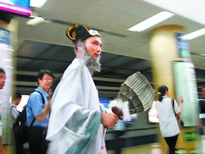 一位還算眉清目秀的年輕男子打扮成諸葛亮的樣子,在地鐵里忽而吟誦,忽而大笑,做出種種引人側目的動作。這是最近風靡網絡的又一個“神秘人物”。如此裝扮卻為何?是崇拜古人?是有?或者干脆就是網絡推手在炒作?由于這位“亮叔”手中拿著一本剛上市的新書,網友們懷疑最后一種的可能性最大。