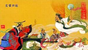 現(xiàn)代人繪制的“完璧歸趙”,璧為傳統(tǒng)的中空圓環(huán)狀。(網(wǎng)絡(luò)圖片)