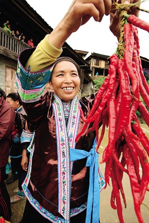 “以前村民們種辣椒只種一點給自家吃,交通不便,種多了怕沒人收購。2008年,村里成立了辣椒專業(yè)合作社,負責收購、銷售,還常請技術人員傳授種植技術!被▽I村村支書韋科介紹,沒有成立辣椒專業(yè)合作社之前,花孖村辣椒種植面積只有七八十畝,現(xiàn)在已擴展到六七百畝。通過辣椒專業(yè)合作社,“花孖辣”已成為桿洞鄉(xiāng)的品牌,苗鄉(xiāng)“辣妹”們的日子,也如紅辣椒一般,一天天紅火起來。
