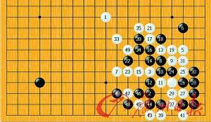 比賽過程:我國手下至第33手,其實(shí)還是在布局階段,使出“鎮(zhèn)神頭”的絕招,日本王子俯首稱臣。