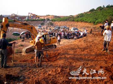 昨日,為保證發(fā)掘工作的順利進(jìn)行,警方已經(jīng)在發(fā)掘現(xiàn)場拉起警戒線。在古墓上方的山坡上,工人們正在用鐵鍬清理黃土。由于圍觀群眾增多,當(dāng)?shù)鼐讲坏貌粻砍龇辣┤S持秩序。目前,當(dāng)?shù)鼐皆雠删,駐守于古墓旁,24小時(shí)守護(hù),防止不法分子破壞古墓。