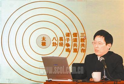 這場(chǎng)名為“太極圖、八卦探秘”的講座,吸引了300余名市民坐進(jìn)“成都故事百家談”的現(xiàn)場(chǎng)。明賜東的開(kāi)場(chǎng)白就讓市民震驚:“產(chǎn)生于6000多年前的太極圖是中國(guó)的第一發(fā)明,早于四大發(fā)明3000多年,它是中國(guó)文化的始祖,中華民族的象征。絕對(duì)不僅僅是很多人片面錯(cuò)誤認(rèn)為太極、八卦只是算命的徽記和符號(hào)。”