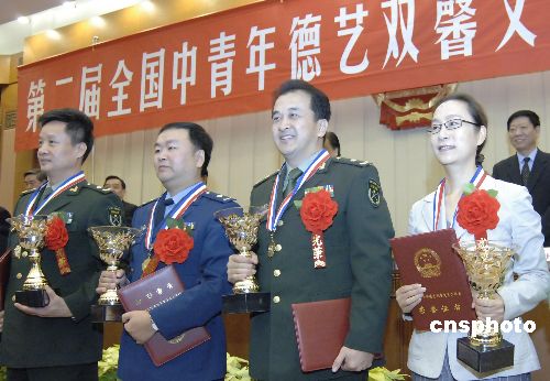 這一由人事部和中國文聯(lián)聯(lián)合開展的評選表彰活動始于二00四年,當(dāng)年授予三十名藝術(shù)家“全國中青年德藝雙馨文藝工作者”榮譽(yù)稱號,此次則擴(kuò)充至五十六人,涵蓋舞蹈、美術(shù)、音樂、曲藝、攝影、影視等各門類,彭麗媛、鞏漢林、黃宏、閻維文等一批觀眾耳熟能詳?shù)奈乃嚸餍,以及業(yè)內(nèi)知名人士如中國新聞社副總編王瑤(中國首位荷賽大獎獲得者)等人皆在列。