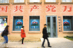 照片:11月2日,北京798藝術(shù)區(qū),參觀者從一處展廳前走過。798藝術(shù)區(qū)原為上世紀(jì)50年代蘇聯(lián)援建的電子工業(yè)廠區(qū)。自2002年起,大批藝術(shù)家開始涌入,使這里逐漸發(fā)展成為國內(nèi)最具國際影響力的當(dāng)代藝術(shù)區(qū)。(記者者 文靜 陳劍攝)