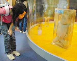 除了古尸和生物類展出,人體科學(xué)教育中心還有很多展區(qū),分別展示了人體胚胎發(fā)生、人類進(jìn)化等一千余件標(biāo)本。
