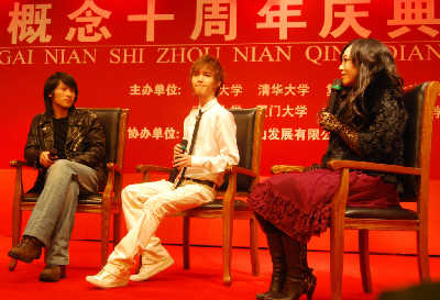 發(fā)掘出韓寒、郭敬明、張悅?cè)坏热说摹靶赂拍钭魑拇筚悺弊哌^了10個年頭,昨天在上海舉辦的“新概念作文大賽”十年慶典上,歷屆獲獎作者和評委濟(jì)濟(jì)一堂,在上海作協(xié)的安排下,韓寒、郭敬明、張悅?cè)蝗艘彩状渭w亮相。