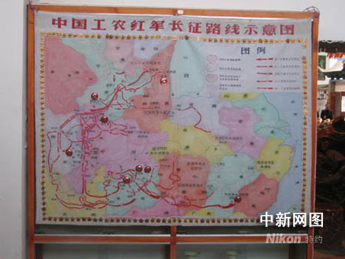 現(xiàn)場的藏品之一:中國工農(nóng)紅軍長征路線示意圖。 龐文娟 攝