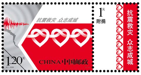《抗震救災(zāi) 眾志成城》附捐郵票20日發(fā)行(圖)