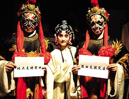 原本定于5月18日開始進行的“昆曲走進北大暨北京大學(xué)昆曲文化觀摩周” 系列活動,在四川災(zāi)情發(fā)生后,暫緩了活動行程!叭珖У咳铡苯Y(jié)束后,曾被稱為“廳堂版”的昆曲戲劇《牡丹亭》于今晚在北大百年講堂演出,此次演出及該文化觀摩周的系列活動全部收入均將捐贈給災(zāi)區(qū)。(易芝娜)
