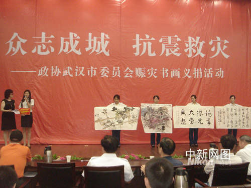 為此,武漢市政協(xié)23日貫徹中央抗震救災(zāi)戰(zhàn)略部署,發(fā)揮人民政協(xié)的優(yōu)勢(shì)和特色,組織書(shū)畫(huà)藝術(shù)家、企業(yè)家進(jìn)行書(shū)畫(huà)義捐、拍賣活動(dòng),全力援助災(zāi)區(qū)生產(chǎn)自救和災(zāi)后重建工作。