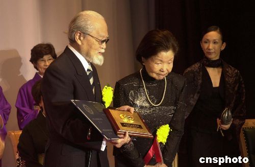 長年積極從事中日文化交流活動的日本松山芭蕾舞團團長清水正夫和夫人松山樹子,曾獲得中國文化部頒發(fā)的“文化交流貢獻獎”后百感交集。 中新社發(fā) 王健 攝