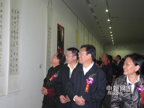 中新網(wǎng)武漢10月6日電 (艾啟平 魏開功)首屆中國重陽書畫展頒獎儀式6日上午在湖北省藝術(shù)館舉行。中共湖北省委常委、省委宣傳部長李春明出席頒獎儀式并為5位90歲以上老年書畫家頒獎,并與眾多老藝術(shù)家、書畫愛好者一起觀看了作品展。