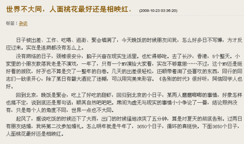徐靜蕾博客文章截圖