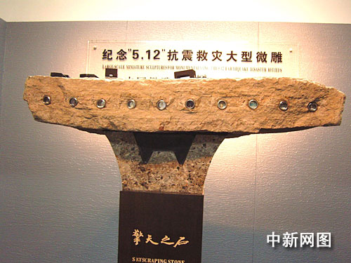 中新網(wǎng)杭州11月3日電(記者 龔讀法 實(shí)習(xí)生 王磊)2008年11月3日,紀(jì)念“5•12”抗震救災(zāi)大型群體微雕作品《擎天之石》,在浙江省杭州市天石微雕藝術(shù)館創(chuàng)作完成。據(jù)了解,這是中國(guó)微雕藝術(shù)界首次合作,具有里程碑式的意義。海內(nèi)外20位微雕藝術(shù)家多件微雕精品鑲嵌在一塊來自地震災(zāi)區(qū)的川石上,并將在展出后贈(zèng)予四川國(guó)家地震遺址博物館收藏。