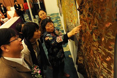 包括清代順治帝明黃地緙織服袍、康熙明黃地織五彩云龍紋妝花緞夾朝袍在內(nèi)的一批清宮龍袍下月初將于北京北緯秋拍會(huì)上拍賣。前天,這些龍袍在北京2008宮廷藝術(shù)品論壇上亮相后備受文物界關(guān)注。據(jù)故宮博物院宮廷織繡研究專家宗鳳英介紹,此次集中亮相的共有18件清宮龍袍,能征集到這樣高檔的拍品,非常難得。