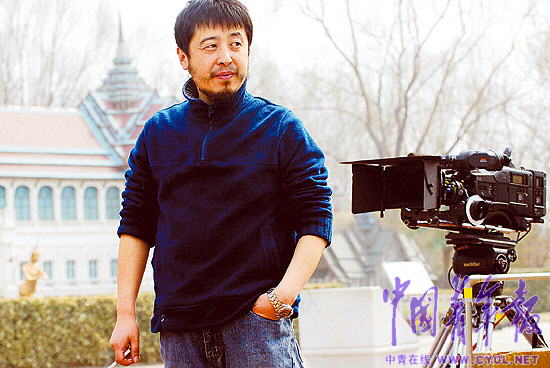 照片:賈樟柯在拍片現(xiàn)場 本報記者 賀延光攝