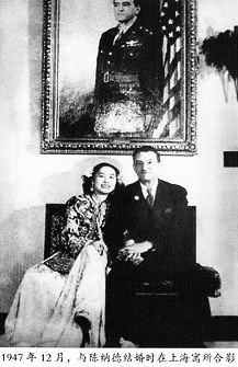 1947年12月,陳香梅與陳納德結(jié)婚時在上海寓所合影