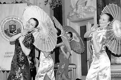 匈牙利羅蘭大學(xué)孔子學(xué)院學(xué)生在跳中國舞蹈