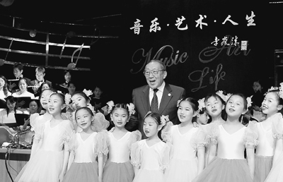 李嵐清和孩子們在一起唱歌。蘇雨恒攝
