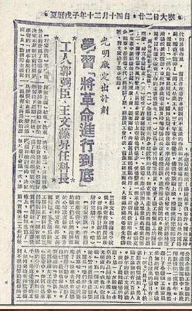 4.1949年1月12日《人民日?qǐng)?bào)》第3版刊登的報(bào)道:光明廠(chǎng)定出計(jì)劃,學(xué)習(xí)《將革命進(jìn)行到底》