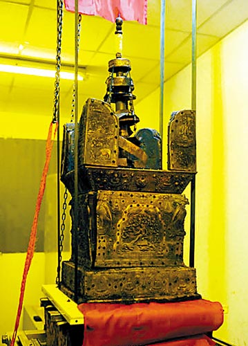 南京古長(zhǎng)干寺地宮出土的七寶阿育王塔(見圖)去年11月被取出鐵函后,有關(guān)是否進(jìn)一步開啟阿育王塔的爭(zhēng)論日趨激烈。南京佛教界人士認(rèn)為,如果不能制定完善的保護(hù)方案,開啟阿育王塔不僅會(huì)對(duì)寶塔本身造成更大的破壞,而且可能會(huì)破壞佛教至寶“佛頂真骨”,由此必將嚴(yán)重傷害全世界佛教信徒的感情。