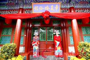 清代“龍鳳帖”、“鴛鴦禮書(shū)”、“網(wǎng)絲婚書(shū)”,史上最早的結(jié)婚證書(shū)——太平天國(guó)時(shí)期婚書(shū)《合揮》,三寸金蓮鞋、新娘頭飾、嫁妝等婚俗物品,昨日一一在珠海圓明新園華夏婚俗館亮相。據(jù)介紹,該館是華南地區(qū)首個(gè)以婚慶、婚俗文化為主題的博物展館,該館兩間展廳共展出從清代至今200多件實(shí)物展品。