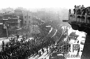 入城式領(lǐng)導(dǎo)為什么先到前門箭樓東邊空地上,是為了勘察受閱部隊(duì)的行進(jìn)路線,因?yàn)檫@支主要由繳獲美式裝甲車、大炮、坦克等裝備組成的威武之師,要從箭樓東側(cè)前行至東交民巷,向帝國主義者示威。人民群眾拍手稱快,受閱部隊(duì)與市民水乳交融,口號(hào)聲、歌聲震天,直至下午5點(diǎn),才由廣安門出城。稍事休整,又踏上了南下解放全中國的征程。