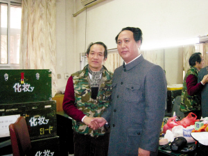 1月21日清晨,石家莊市總工會(huì)宣教部部長(zhǎng)趙新月起了個(gè)大早,穿上了一身嶄新的銀灰色中山裝,搭早車趕往北京。10點(diǎn)半,他準(zhǔn)時(shí)出現(xiàn)在八一電影制片廠化裝室,多次為影視劇中毛澤東的扮演者古月化裝的著名化裝師楊碩玲,將為趙新月第二天在北京的一場(chǎng)演出進(jìn)行設(shè)計(jì)造型。