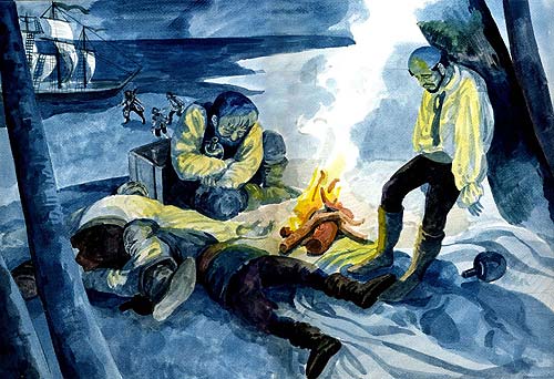 在大海盜愛德華 洛威爾的海盜旗上,鮮紅的人體骨架代替了白色的骷髏,似乎在昭示著,這位海盜的殘忍是罕有匹敵的。洛威爾曾截獲了一條從巴西返航的葡萄牙商船,葡萄牙船長將一萬多枚金幣裝在麻袋里,用繩索扎緊掛在舷窗外,期望能躲過這一劫。但這點小小的詭計沒能逃過海盜們銳利的眼睛,就在欣喜的海盜們將手伸向繩索的那一瞬,船長突然從腰間拔出匕首割斷了繩子,金幣落入了大海。氣急敗壞的洛威爾將這位船長的嘴唇割了下來,當著所有俘虜?shù)拿嬖谟蜔羯峡窘沽,然后悍然命令手下?2名葡萄牙船員全部殺死。1724年,洛威爾的海盜船被英國海軍捕獲,惡貫滿盈的洛威爾在海戰(zhàn)中被打死,在審訊被俘的海盜時,人們獲知了這段聳人聽聞的慘劇,于是,英國海軍法庭對洛威爾手下的十四名骨干處以絞刑。