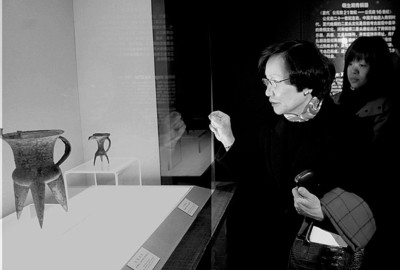 昨日,臺北客人來到上博,立即同上博方面進行了極其融洽的商談,由于相談甚歡,遲遲不能結束,原定的參觀時間不夠用了,所以上博方面只好請臺北客人進入地下的貴賓廳,從庫房里精選出館藏珍品進行展示。由于來訪的大多是臺灣的文物專家,因此客人們看得十分仔細,甚至帶著學者的眼光來探究!爸芄闻烤褪瞧崞鞣矫娴膶<,我們也展示了漆器,周院長看得十分仔細。 ”上博接待人員透露,展示給臺北客人看的包括青銅器、瓷器、書畫等,共10多件重要藏品。