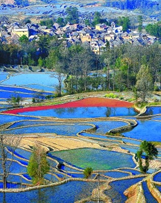 早春二月,云南省紅河哈尼族彝族自治州元陽(yáng)縣近20萬(wàn)畝梯田已灌水泡田進(jìn)入備耕期。放眼望去,山嶺溝壑間千層水網(wǎng),萬(wàn)疊田疇,或波光粼粼,或波平如鏡,景色奇幻。每天有眾多中外游人及攝影愛好者來(lái)這里觀光采風(fēng)。 為將著名的紅河哈尼梯田申報(bào)為世界文化遺產(chǎn)保護(hù)地,云南省紅河哈尼族彝族自治州特別邀請(qǐng)由中國(guó)社會(huì)科學(xué)院10多名文史專家組成的國(guó)情調(diào)查組于2月16日至19日赴元陽(yáng)縣考察梯田,為申遺出謀劃策。經(jīng)數(shù)日深入調(diào)研,專家們認(rèn)為,紅河哈尼梯田同時(shí)具備物質(zhì)與非物質(zhì)世界文化雙遺產(chǎn)特征,應(yīng)注重可持續(xù)發(fā)展,將生態(tài)環(huán)境保護(hù)與水資源科學(xué)利用相結(jié)合,并多元化立體推介其梯田文化的深刻內(nèi)涵。