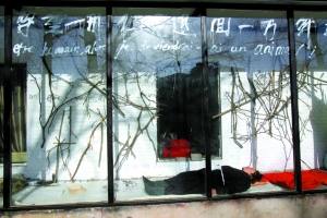 昨日下午798南門附近799藝術(shù)空間櫥窗內(nèi),藝術(shù)家郝光在此搭起了帳篷,并移居于此。這個被郝光命名為“退一萬年櫥闊天空”的行為藝術(shù),是藝術(shù)家維權(quán)事件的進一步升級,郝光想借此表示對798物業(yè)的抗議。對此,798藝術(shù)區(qū)建設(shè)管理辦公室主任陳勇利表示,郝光與物業(yè)的糾紛屬于經(jīng)濟合同糾紛,物業(yè)方七星集團已經(jīng)起訴至法院,屆時會通過法律來裁決。