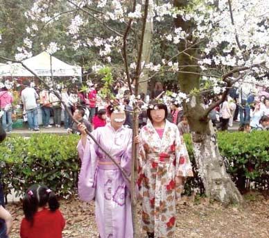 武大校園的櫻花又開了。21日,大量的人流涌入武大賞花,附近交通一度擁堵嚴重。一對操武漢口音的母女身穿和服在櫻花樹下照相,招致數(shù)名學子的轟趕,很多圍觀市民也表示憤慨。率先聲討的小伙子,據(jù)說是武漢大學的大二學生。聲討聲中,這對母女面露窘態(tài),匆忙逃離。(詳見本報3月23日A15版)