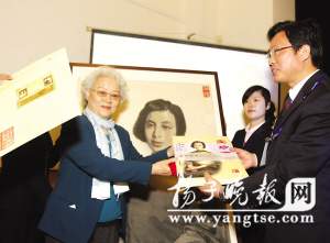 面帶笑容、齊耳短發(fā)、雙目炯炯有神……高約2米、寬約1.5米的畫像上,一位美麗而慈祥的母親躍然紙上。劉愛琴告訴記者,這幅畫來源于母親的一張舊照,那也是母親留給她唯一的記憶。她四個月大的時候,母親就投身革命,并把她托給他人撫養(yǎng),“我從來沒見過母親,這張照片還是姨媽送給我的!眲矍僬f,2002年母親誕辰100周年時,她委托國內(nèi)著名畫家趙華勝先生以照片為原型,精心繪制了一幅母親的畫像。當時在北京還舉辦了一場何寶珍烈士誕辰100周年座談會,其中500多名參會的革命家及親屬在座談會橫幅上集體簽名。這條珍貴的簽名橫幅昨天也被捐至館內(nèi)!拔医衲82歲了,自己不可能永遠保留這幅畫像,今天捐贈一方面是豐富紀念館有關(guān)母親的資料,那是我對母親的記憶,另一方面也是為了讓后人能更好地學(xué)習(xí)烈士精神!贝送,劉愛琴女士還向紀念館捐贈了由國外發(fā)行的珍貴紀念郵冊一件,郵冊上則生動地展現(xiàn)了年輕時期的劉少奇同志與何寶珍烈士的合影。