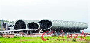 昨天,記者在廣東海上絲綢之路博物館看到,氣勢宏偉的“水晶宮”外墻裝上蔚藍色的玻璃,與大海、藍天相輝映,一朵朵白云在“水晶宮”上飄浮。在“水晶宮”內(nèi),上層的考古走廊及下層的觀光走廊已經(jīng)完工,觀光走廊上安裝上封閉的透明玻璃,已經(jīng)灌水8米深。