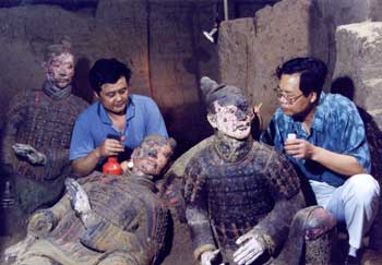 多年來,彩繪的保護成為秦俑文物保護工作中一項迫切的重大難題。為保護彩繪,秦始皇兵馬俑博物館成立了彩繪保護科技課題組,并于上世紀90年代初與德國巴伐利亞州文物保護局開展合作,全面、系統(tǒng)地揭示了彩繪的層次結(jié)構(gòu)、物質(zhì)組成、彩繪工藝以及損壞機理。