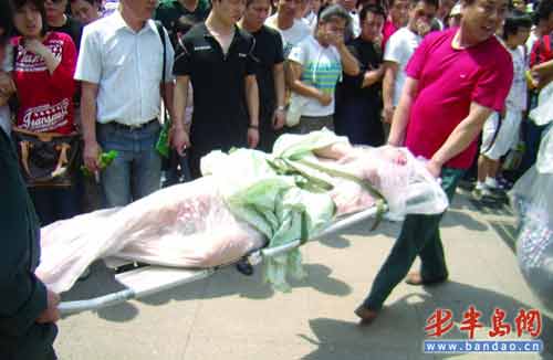 一男子全身裸露,被裝在一個(gè)透明塑料袋里,周圍還散發(fā)著一股臭味!5月24日中午12時(shí)30分許,在臺(tái)東三路步行街逛街的市民發(fā)現(xiàn)街上躺著一具全裸“男尸”,趕緊報(bào)了警。110民警趕到現(xiàn)場(chǎng)發(fā)現(xiàn)這名男子還有呼吸,便趕緊撥打120將其送往醫(yī)院?闪钊讼氩坏降氖牵@具“男尸”在被送到醫(yī)院后,竟然自己撕掉身上的塑料袋后穿衣跑了。事后大家才知道,這是一名男子在表演行為藝術(shù)。